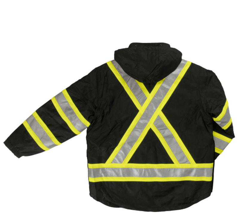 • Removable high visibility lining (black reverse side) with adjustable cuffs.