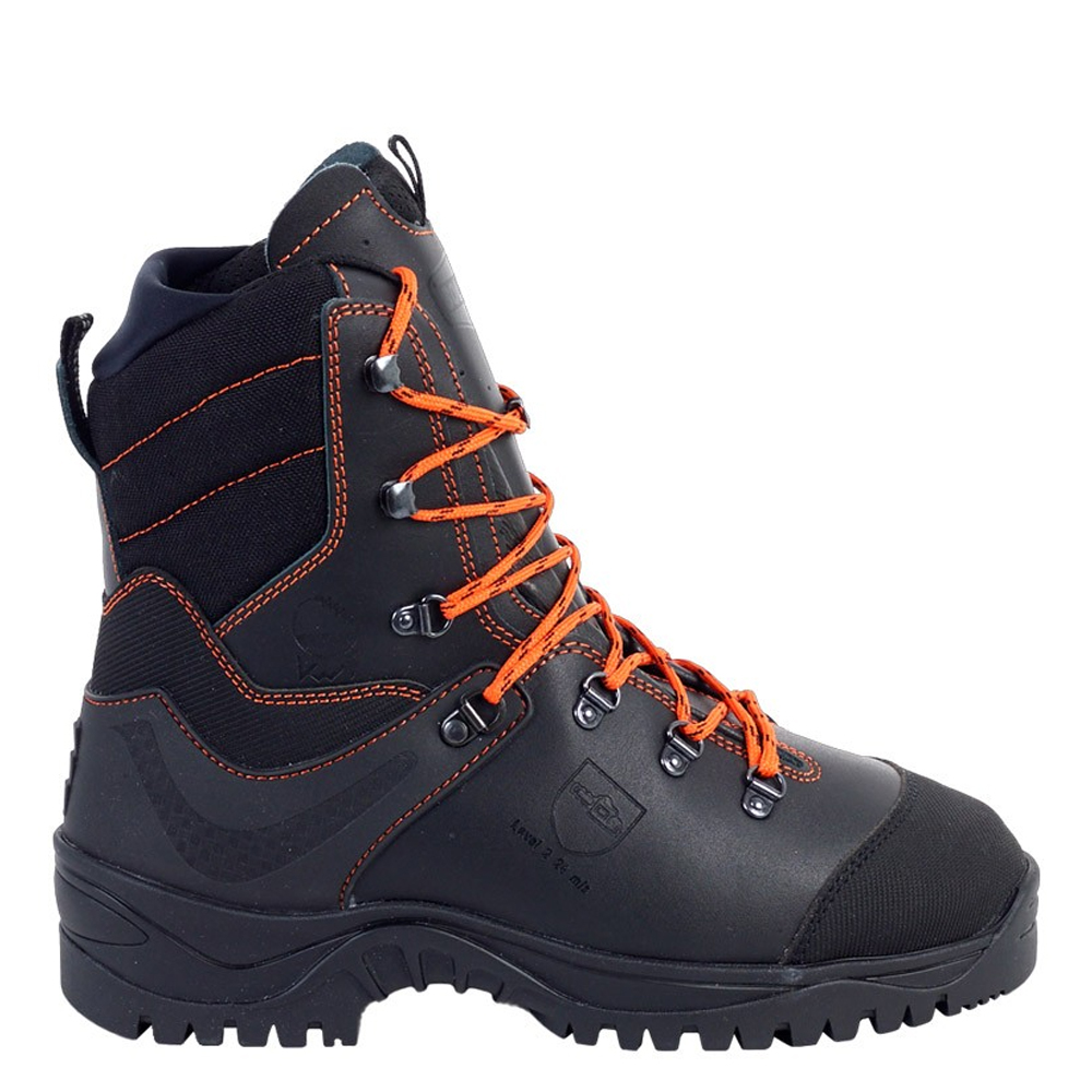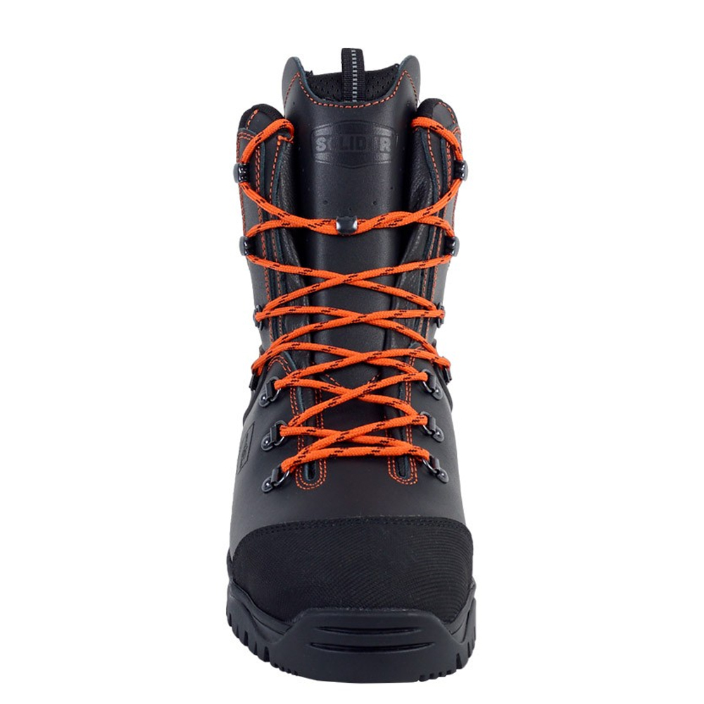 Botte scie à chaines – KAILASH de Solidur est une chaussure de sécurité de protection scie à chaîne tenue à la main Classe 2 (24m/s). Elle est dotée d’une semelle en caoutchouc nitrile antidérapante et d’un insert antiperforation composite, d’une doublure intérieure respirante et d’un dessus en cuir hydrofuge. Robuste, elle comporte un surbout avant et arrière anti-usure, mais aussi un embout XL en acier.