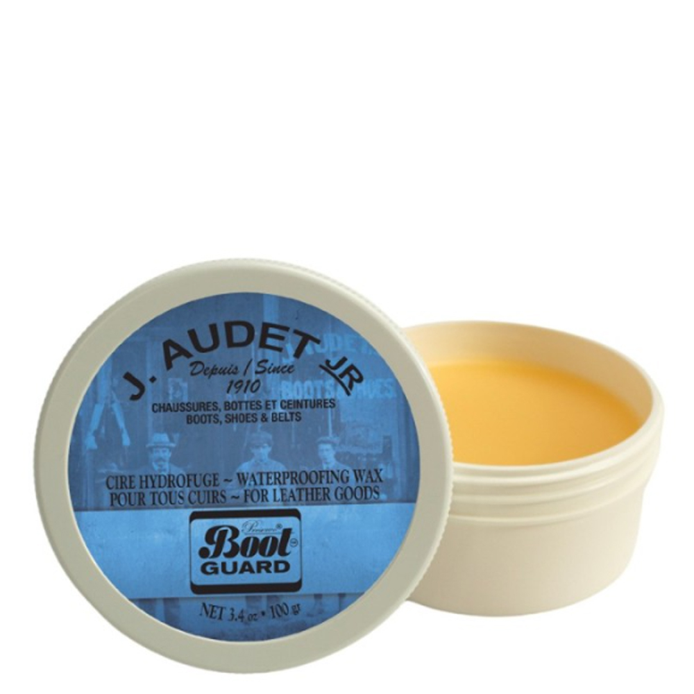 La cire hydrofuge de J. Audet Jr. (souvent associée à la marque Boot Guard) est un produit d’entretien haut de gamme conçu pour protéger et revitaliser les articles en cuir.