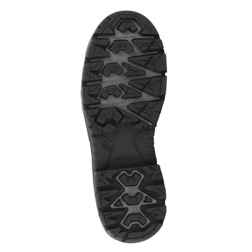 - Semelle de caoutchouc naturel 4Grip antidérapante sur les surfaces sèches, mouillées et huileuses, résistante à l’usure et aux huiles.
