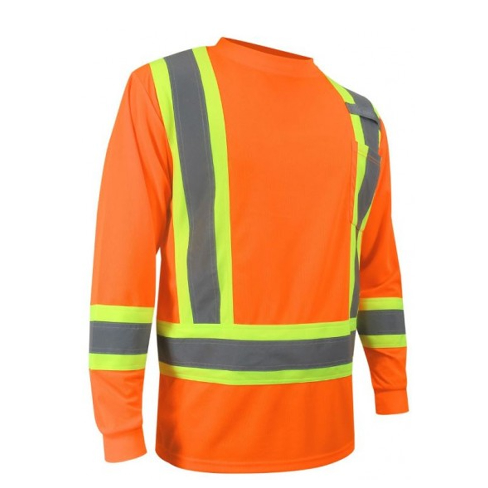 T-shirt avec bandes réfléchissantes – 10-665R de Jackfield est un t-shirt à manches longues haute visibilité conçu pour les vêtements de travail, offrant des bandes réfléchissantes pour une visibilité de jour comme de nuit et un tissu à séchage rapide qui aide à évacuer l’humidité, vous gardant au sec et à l’aise pendant l’effort. Ce vêtement est conçu pour la sécurité et le confort dans divers environnements de travail, notamment ceux qui exigent une grande visibilité.